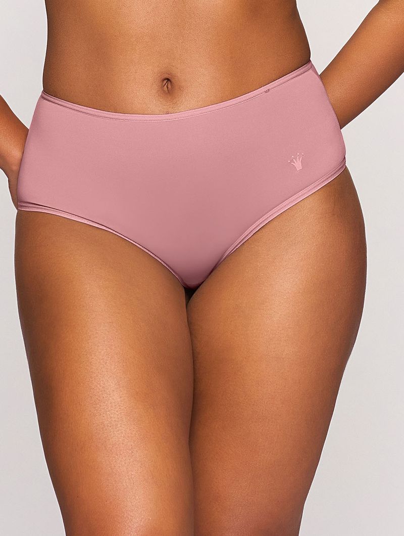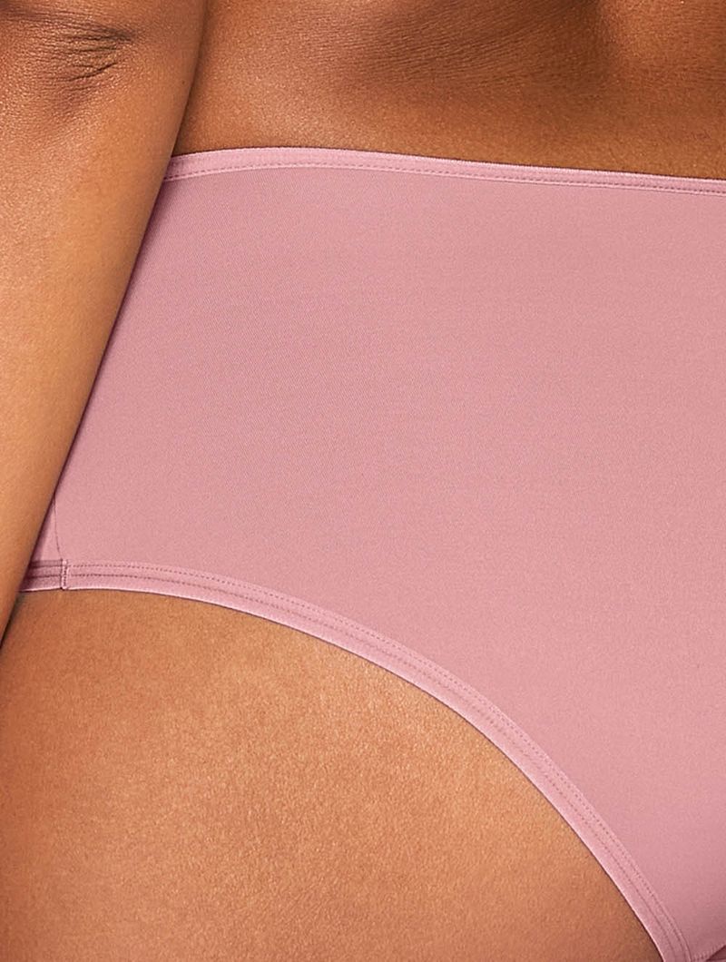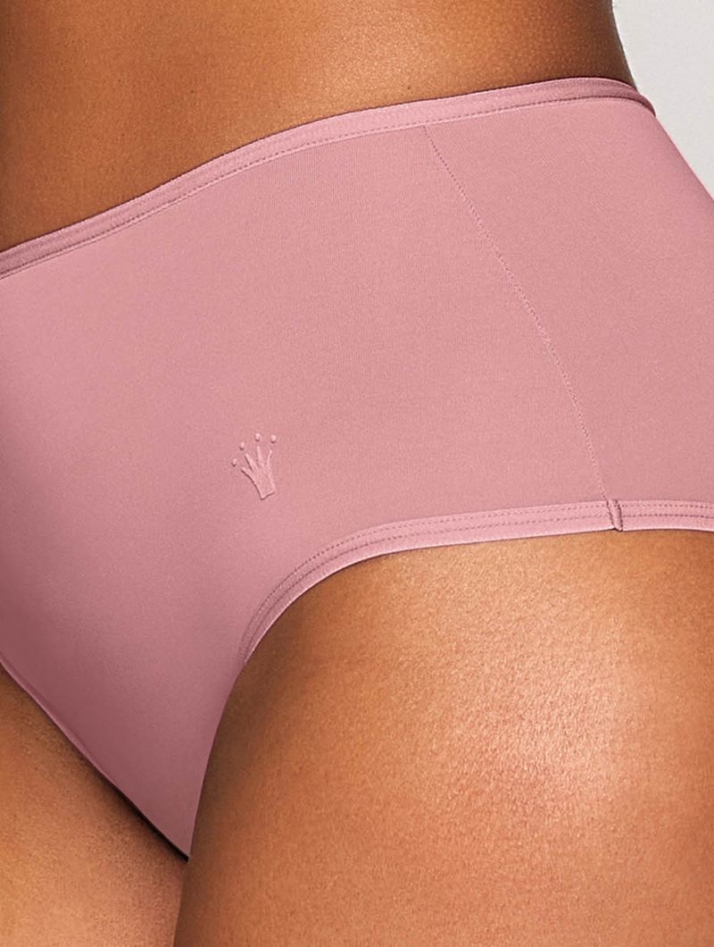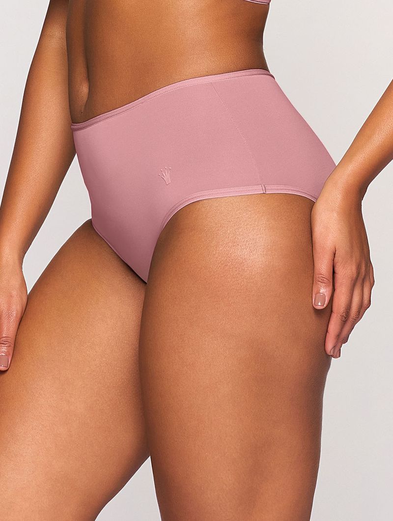 Calcinha em microfibra aveludada opaca e acabamentos em elástico macio. Modelagem de alta cobertura.