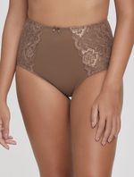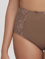Calcinha de laterais largas com maior cobertura. Peça em cetinete, com recortes de renda nas laterais e detalhe de lacinho na cintura.