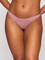 Calcinha em microfibra aveludada opaca e acabamentos em elástico de viés. Modelagem fio que não marca sob a roupa.