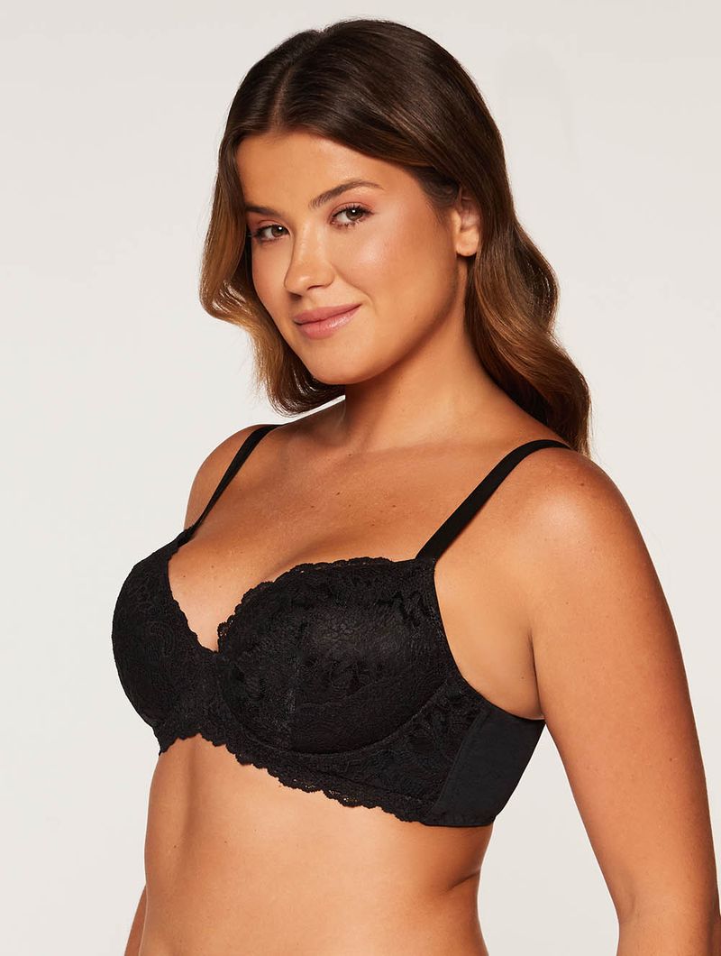 Sutiã com bojo mácio que se adapta melhor ao formato do seio. Modelo em renda na frente e apenas microfibra nas costas, barbatanas nas laterais, alças com regulagem e fecho nas costas