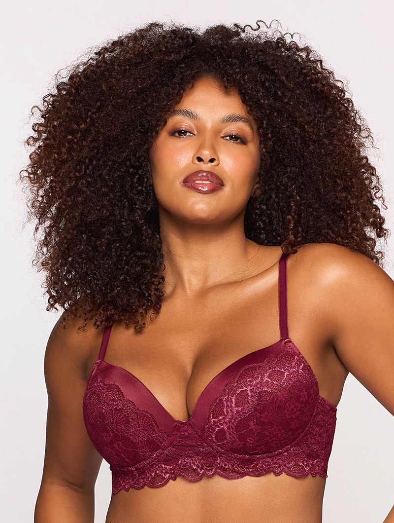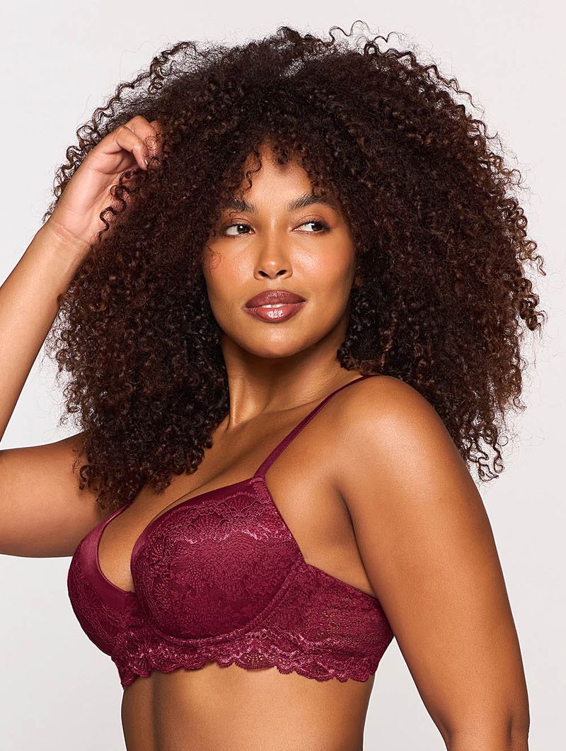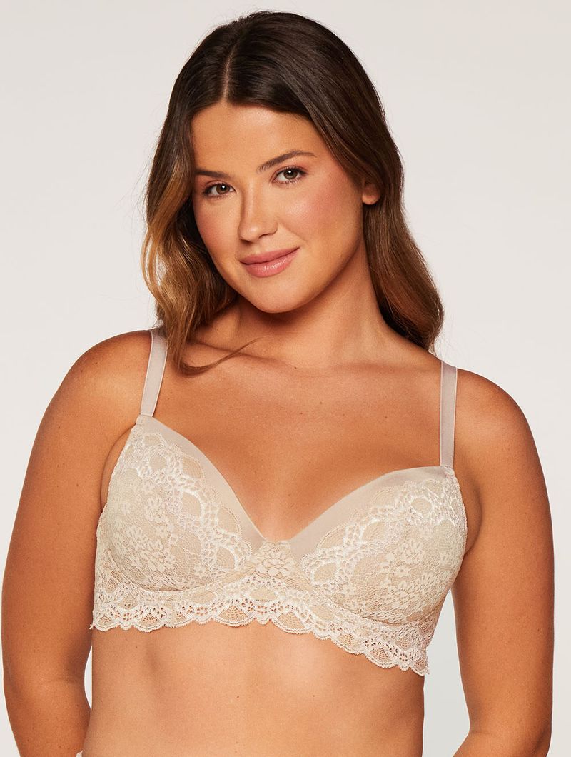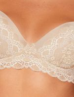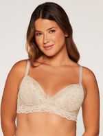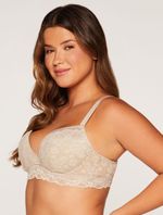 Sutiã com bojo e aro. O modelo possui plicação de renda em toda a base da frente e em detalhe do bojo. Base reforçada com barbatanas laterais garantem melhor sustentação.