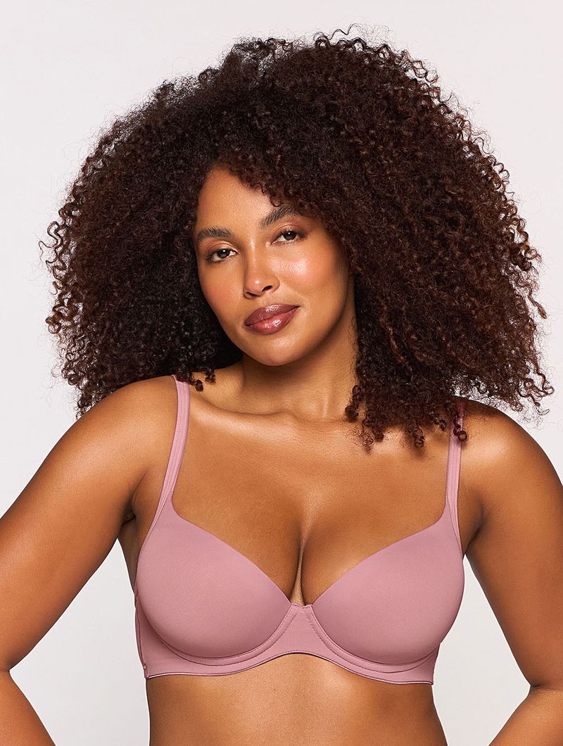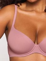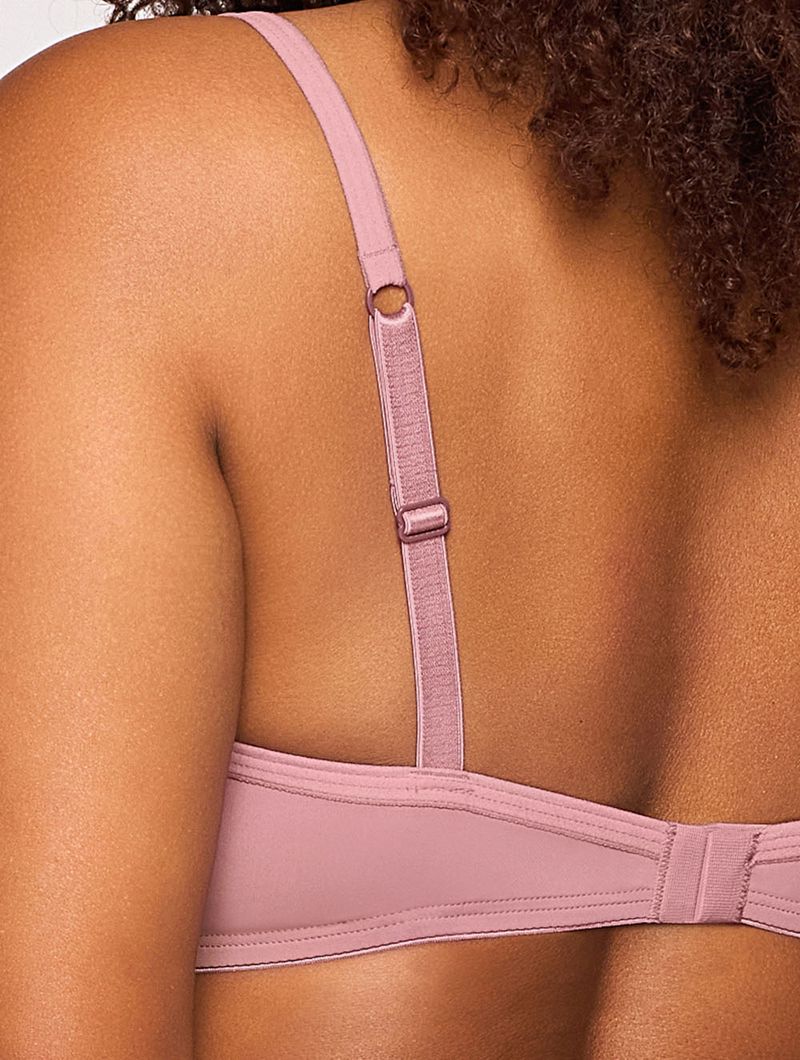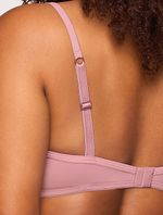 Sutiã em microfibra aveludada opaca com meia alça em viés, com aro e bojo com enchimento.