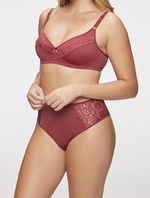 Calcinha de média cobertura e compressão. Acabamentos limpos em viés e laterais em renda com leve transparência e brilho.