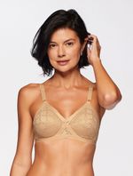 Sutiã em tule com power e renda delicada no busto, possui detalhe de lacinho. Modelagem vintage de sutiã com fecho traseiro, sem aros. A sustentação é feita através do recorte em “x” no busto, delineando as curvas. Não possui bojo e apresenta alta sustentação.